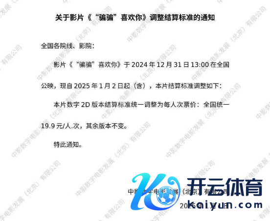 1月1日,《逐日经济新闻》记者从多位业内东谈主士处获悉,有影院接到告知,由金晨、孙阳、李雪琴等主演的正在上映的影片《“骗骗”心爱你》自2025年1月2日起(含)调理结算规范:本片数字2D版块结算规范斡旋调理为每东谈主次票价:寰宇斡旋19.9元/东谈主.次,其余版块不变。