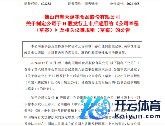 登陆A股整10年,“酱油一哥”海天味业日前迎来新动向。12月,海天味业发布公告称,为进一步鼓励众人化计策,普及国际品牌形象和详细竞争力,公司拟刊行H股股票并恳求在香港谐和交往总共限公司主板挂牌上市。