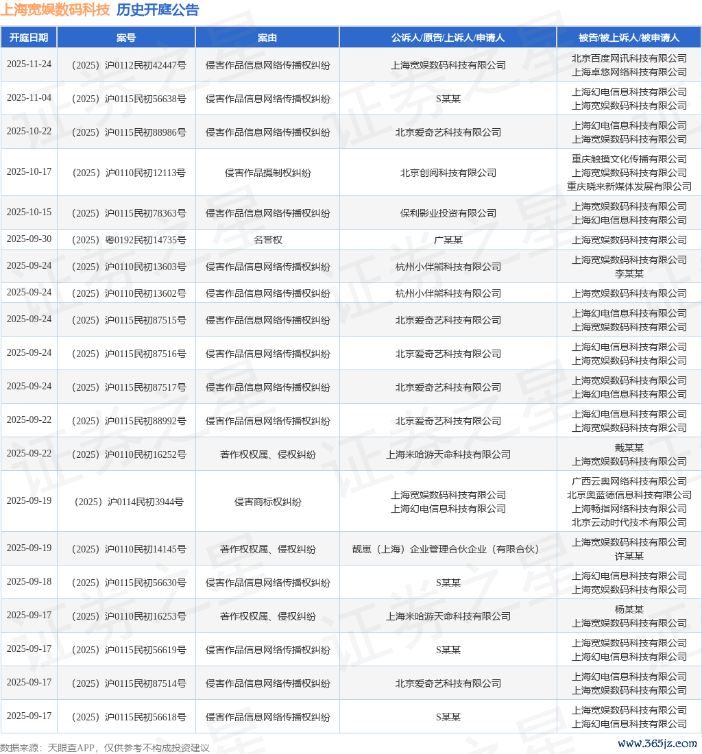 本站音问kaiyun,把柄天眼查APP披露,近日公布了一则上海宽娱数码科技有限公司手脚被告/被上诉东说念主的开庭公告,谛视践诺如下: