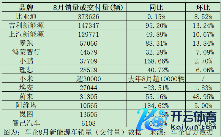 9月1日,比亚迪发布的产销快报表露,8月新动力汽车销量为37.36万辆,同比增长0.15%,环比增长8.52%。