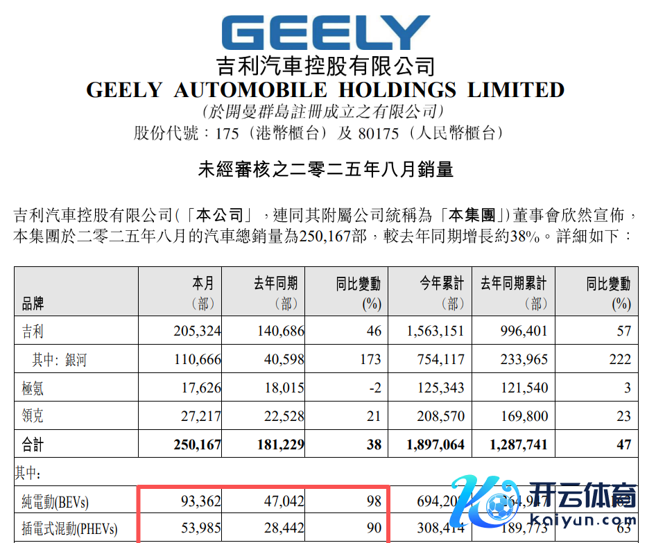 总体来看,祯祥汽车8月的纯电销量同比增长98%至9.34万辆;混动销量同比增长90%至5.40万辆。