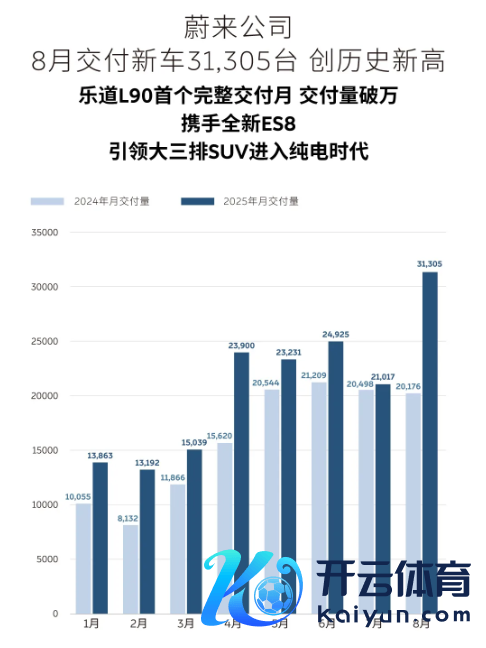 8月,蔚来托福3.13万辆,同比增长55.16%,环比增长48.95%。这是蔚来自2025岁首于今,初次月度托福量超3万辆。