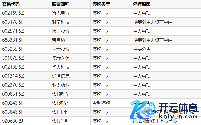 A股停牌领导:13股当天停牌kaiyun.comA股停牌领导:13股当天停牌